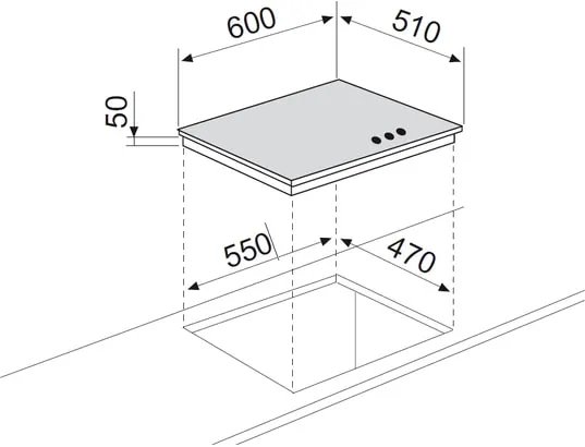 - Encastrement requis : 55 x 47 x 5 cm (L x P x H)
