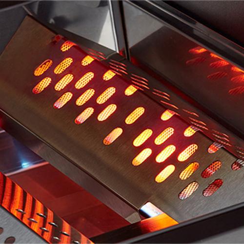 PRATIQUE et EFFICACE Brûleur arrière infrarouge (3,5 kW) : pour des viandes à la fois juteuses et croustillantes ; une vaste grille de maintien au chaud en inox qui se déploie à l’ouverture du couvercle ; 3 brûleurs en inox pour une puissante cuisson directe ou indirecte ; large hublot panoramique pour surveiller la cuisson de vos aliments
