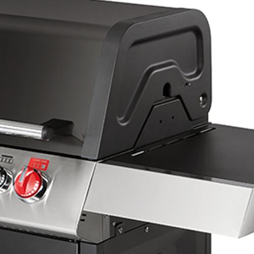 PRATIQUE et EFFICACE Brûleur arrière infrarouge (3,5 kW) : pour des viandes à la fois juteuses et croustillantes ; une vaste grille de maintien au chaud en inox qui se déploie à l’ouverture du couvercle ; 5 brûleurs en inox pour une puissante cuisson directe ou indirecte ; large hublot panoramique pour surveiller la cuisson de vos aliments
