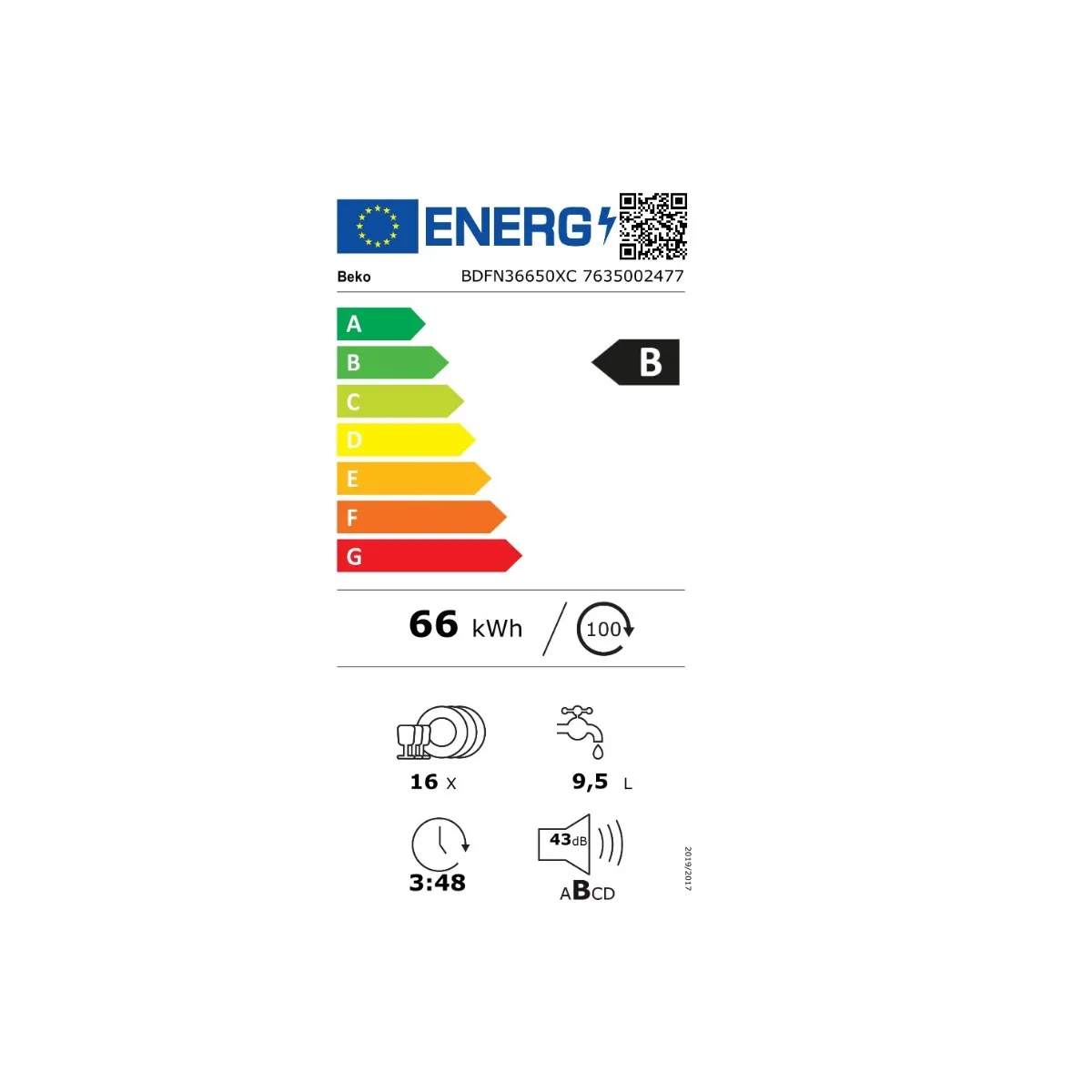 programme Eco à 0,66 kWh et 9,5 L par cycle