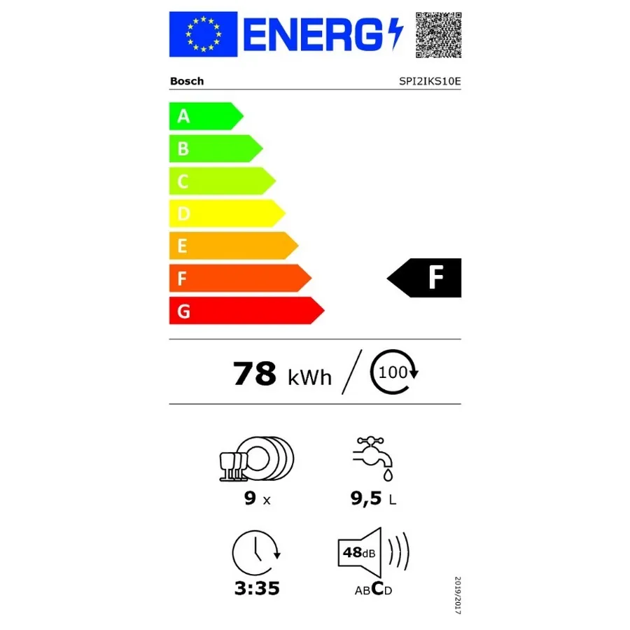 • Consommation éco : 0,780 kWh et 9,5 L par cycle