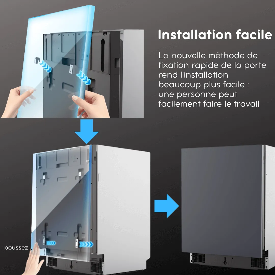 La nouvelle méthode de fixation rapide de la porte rend l’installation beaucoup plus facile : une personne peut facilement faire le travail