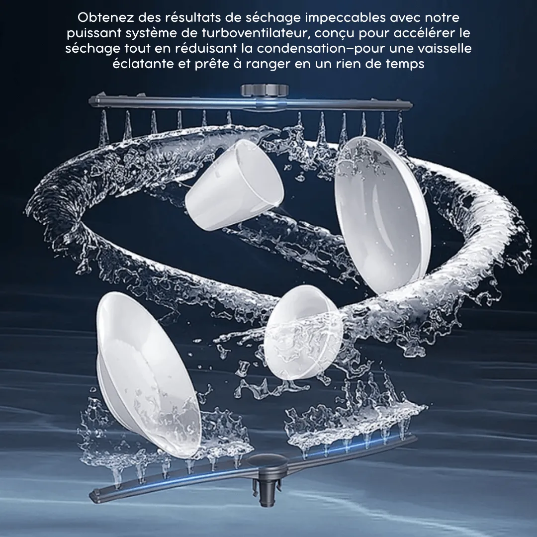 Le turbofan intégré supplémentaire laisse échapper la vapeur tout en aidant à faire circuler l’air pour garantir une odeur fraîche et un séchage rapide de la vaisselle, ce qui permet d’obtenir une vaisselle prête à être rangée dans l’armoire