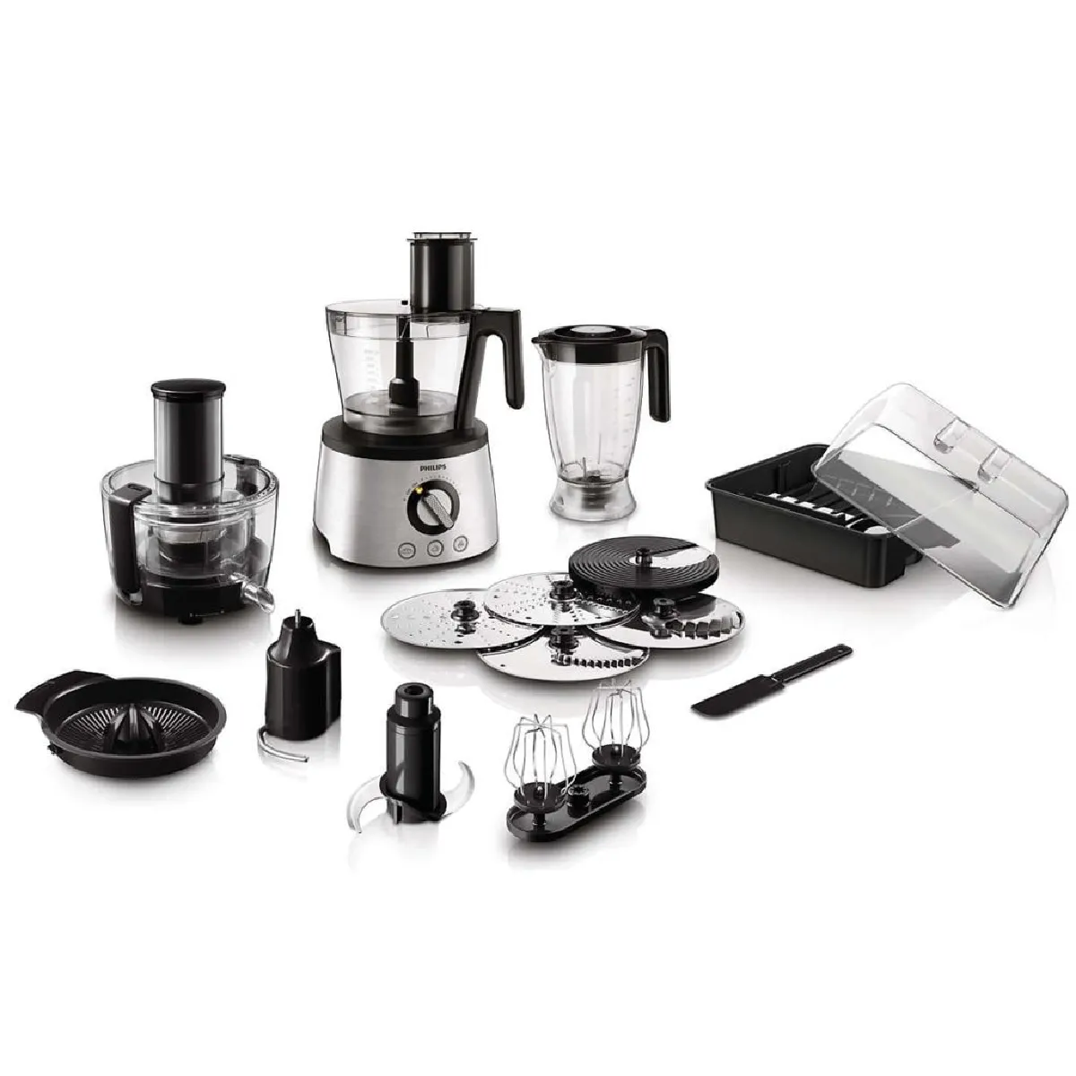 Le robot de cuisine Avance Collection HR7778/00 de Philips est un hachoir d’aliments domestique 4 en 1 pour vos tâches quotidiennes : découper des légumes, broyer de la viande et même des noix, râper du fromage, réduire en purée, mélanger des ingrédients pour différentes recettes et pétrir la pâte avec sa technologie PowerChop. Avec son nouveau et innovant crochet de malaxage métallique et 3 boutons automatiques à une touche pour la préparation de différents types de pâte, la fabrication du pain n’a jamais été aussi simple. Il dispose de lames et de disques en acier inoxydable et a une puissance de 1300 W. L’appareil a une vitesse variable réglable entre 1 et 12, afin de cuisiner des pains faits maison, des gâteaux, des boissons et plus encore. La livraison comprend 1 lame en acier inoxydable, 1 outil de malaxage, 1 disque émulsifiant, 1 accessoire de hachage fin, 1 accessoire de tranchage fin, 1 presse-agrumes, 1 outil de nettoyage, 3 couteaux et 1 accessoire d’émulsion.Les commandes sont livrées à toutes adresses, en France continentale. Nous ne livrons pas la Corse et. vidaXL ne livre pas les DOM-TOM.