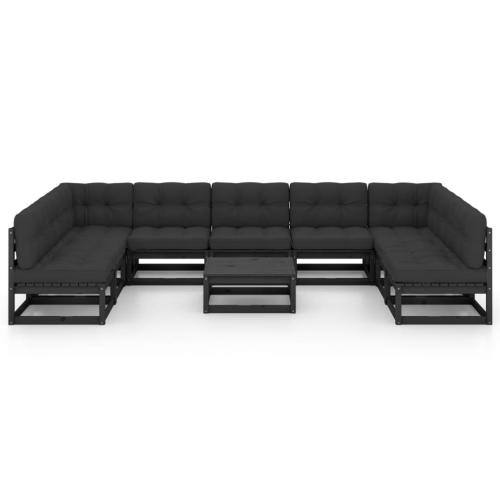 Salon de jardin 10 pcs avec coussins Noir Bois de pin massif