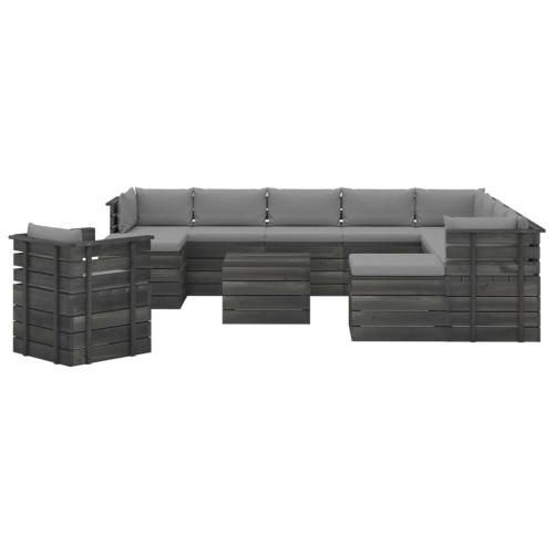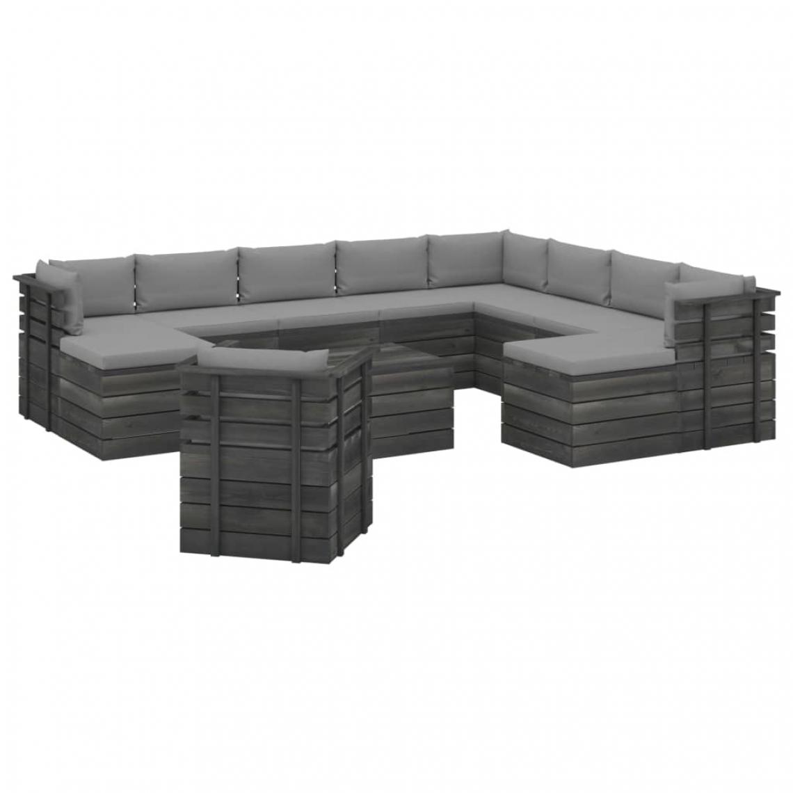 Salon de jardin palette 12 pcs avec coussins Bois de pin massif
