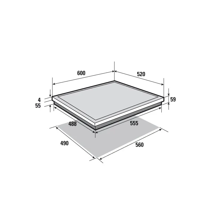facilite le nettoyage et s’intègre discrètement. Avec une puissance de raccordement de 7 200 W et 4 foyers, cette table encastrable de 60 cm répond aux besoins quotidiens.
