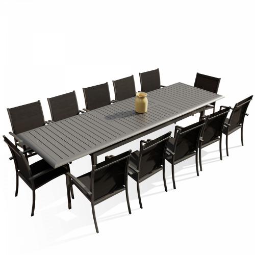 Table de jardin extensible aluminium 220/320cm + 12 fauteuils empilables textilène Gris Anthracite