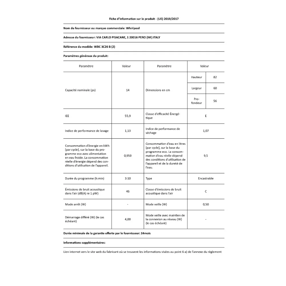 Whirlpool WBC3C26B – Noir |